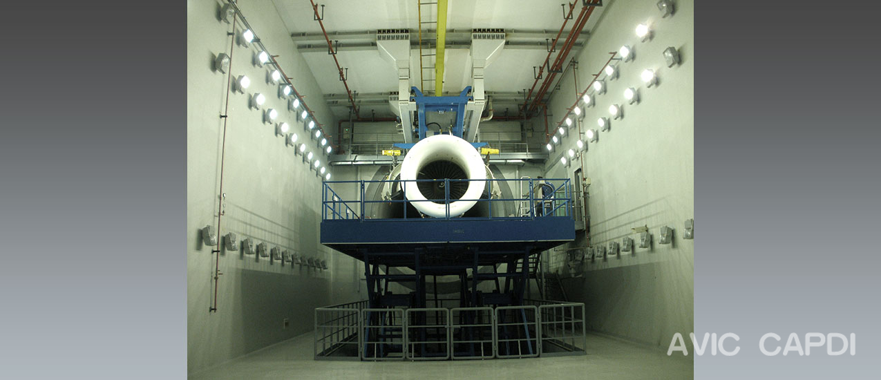 室內(nèi)航空發(fā)動(dòng)機(jī)地面試車(chē)臺(tái),該試車(chē)臺(tái)為帶上部運(yùn)輸?shù)奈蓓攽覓焓皆囓?chē)臺(tái),結(jié)構(gòu)合理,發(fā)動(dòng)機(jī)推力測(cè)量精度達(dá)國(guó)際水平。