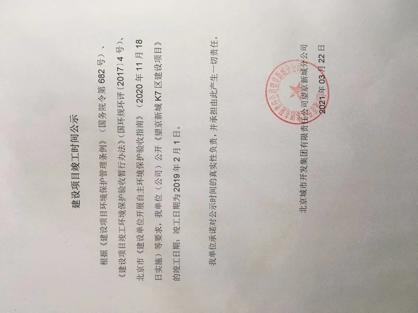 《望京新城K7區(qū)建設(shè)項(xiàng)目環(huán)境影響報告書》于2002年12月完成;2002年12月18日獲得《北京市環(huán)境保護(hù)局關(guān)于望京新城K7區(qū)建設(shè)項(xiàng)目環(huán)境影響報告書的批復(fù)》(京環(huán)保監(jiān)督審字[2002]456號)。